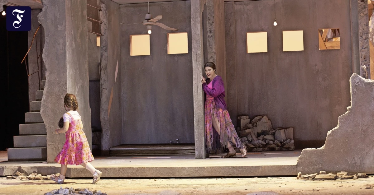 Im dritten und vierten Akt verknüpfen Verdi und sein Librettist Antonio Ghislanzoni die Dreiecksgeschichte zwischen Radamès, der Pharaonentochter Amneris und der äthiopischen Sklavin und unerkannten Königstochter Aida mit dem Zwiespalt Aidas. Statt in großen Tableaus ereignet sich der zweite Teil der Oper also als Kammerspiel – und die vom Publikum am Ende ungebrochen positiv aufgenommene Neuinszenierung lässt dabei an Intensität nicht nach, im Gegenteil: Das geborstene Haus und der gefallene Wasserturm im Einheitsbühnenbild von Ausstatterin Bettina John und der Regisseurin bilden zwar noch immer den Hintergrund. Punktuell kann das zu kraftvoll werden, vor allem für den Radamès von Tenor Matthew Vickers, der letztlich zu lyrisch bleibt und an dessen Seite Sopranistin Megan Marie Hart die Partie der Aida bis hin zu deren herben Mezzo-Tiefen stark und intensiv ausleuchtet.