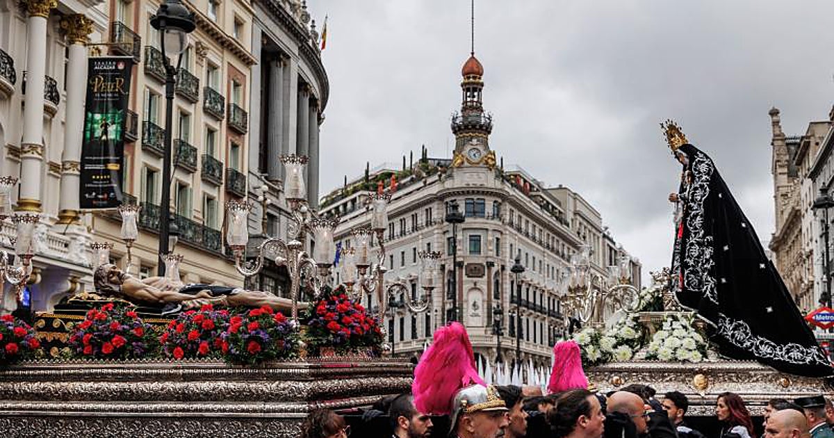 La Real e Ilustre Congregación de Nuestra Señora de la Soledad y el Desamparo es la protagonista de ... la jornada, que protagonizará el encuentro entre la Virgen de la Soledad y el Desamparo y el Cristo Yacente de las Calatravas. La marcha comenzará en el hogar de las tallas, la iglesia de la Concepción Real de Calatrava, en la calle de Alcalá, 24, a las 16.00 horas. Procesión del Sábado Santo La Soledad / 16.00 h Salida / Llegada Iglesia de la Concepción Real de Calatrava (Alcalá, 25) N Carrera de San Jerónimo Alcalá Puerta del Sol Mayor Bordadores Plaza del Conde de Miranda Estación de penintencia Plaza de La Villa Imágenes Nuestra Señora de la Soledad y Desamparo Juan Pascual de Mena (s. XVIII) Cristo Yacente Talleres Olot (s. XX) Fuente: Archidiócesis de Madrid / ABC Procesión del Sábado Santo La Soledad / 16.00 h Salida / Llegada Iglesia de la Concepción Real de Calatrava (Alcalá, 25) Estación de penintencia Plaza de La Villa Alcalá Bordadores Puerta del Sol Carrera de San Jerónimo Mayor Imágenes Nuestra Señora de la Soledad y Desamparo Juan Pascual de Mena (s. XVIII) Cristo Yacente Talleres Olot (s. XX) Plaza del Conde de Miranda Organización Real e Ilustre Congregación de Nuestra Señora de la Soledad y Desamparo Fuente: Archidiócesis de Madrid / ABC