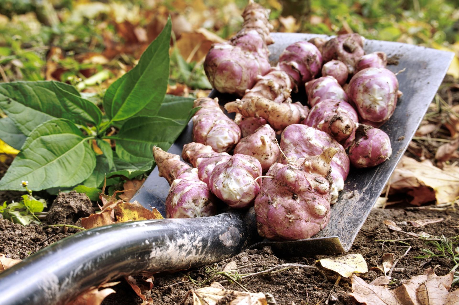'Violet de Rennes' produit des topinambours à la peau violette et à la chair blanche. Une fois la récolte terminée, vérifiez de ne pas avoir laissé des morceaux en terre car les topinambours peuvent devenir très envahissants au potager. Récoltez les tubercules au fur et à mesure de vos besoins car ils supportent bien le froid et peuvent rester ainsi au potager.