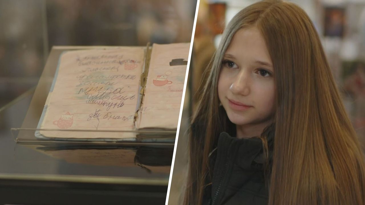 Polina uit Oekraïne verloor haar dagboek, nu ligt het in een museum Ze dacht het dagboek nooit meer terug te zien, maar gisteren zag ze het weer in het oorlogmuseum in Groenlo. Na een lange zoektocht lukt het de hulpverlener de familie van Polina op te sporen.