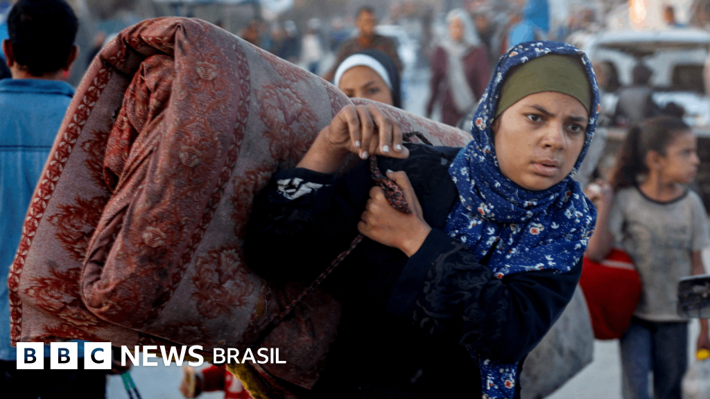 Crédito, Reuters Legenda da foto, Cerca de 700 mil deslocados da Cidade de Gaza e do norte da faixa aguardam a conclusão da retirada de Israel para retornar ao que restou de suas casas Milhares de pessoas percorreram a rodovia costeira de Gaza a pé, de carro e de carroça para retornar às suas casas, mas a ofensiva militar israelense destruiu grande parte da cidade. Dezenas de caminhões com ajuda humanitária começaram a entrar em Gaza, e muitos outros estão fazendo fila na fronteira com o Egito, mas James Elder, da Fundo das Nações Unidas para a Infância (Unicef), afirma que isso não é suficiente para o que é necessário.